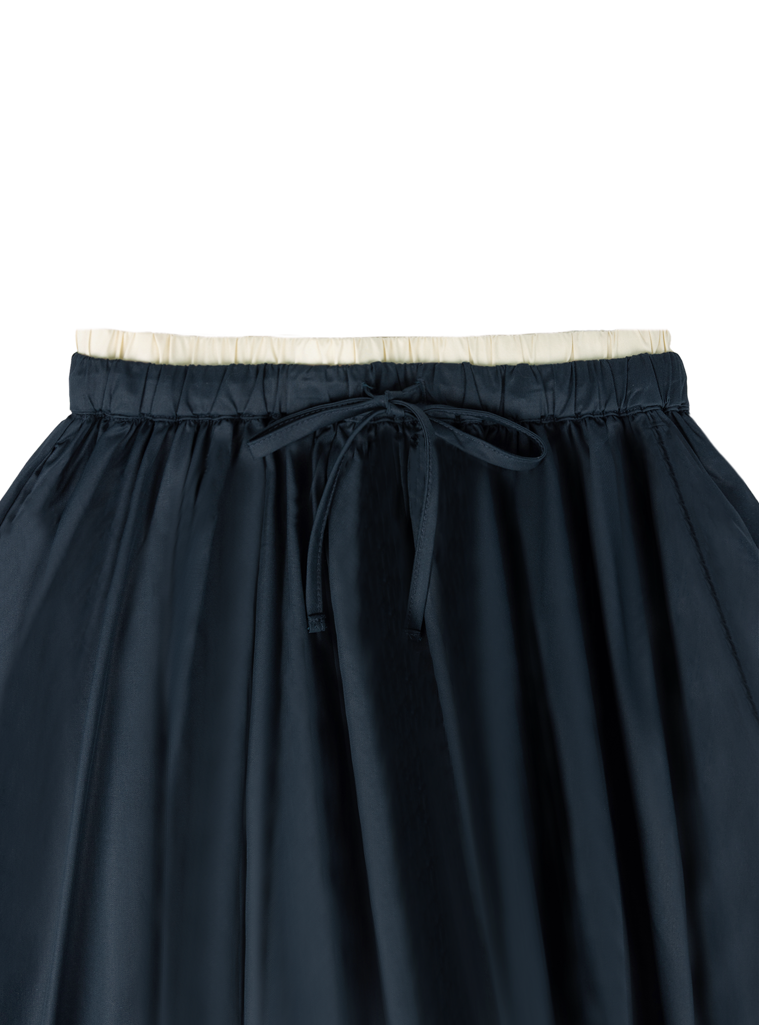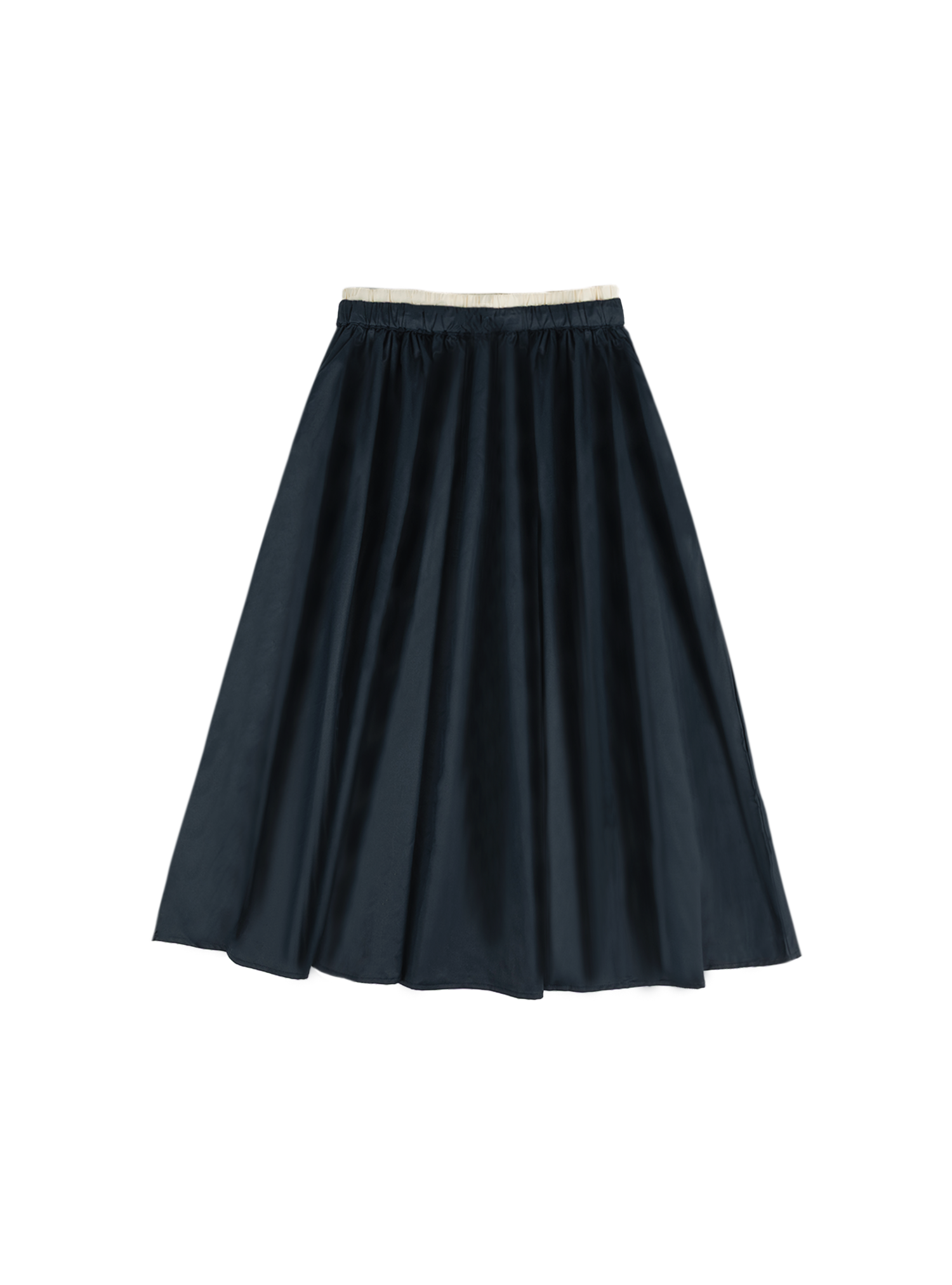 An easy staple designed for all-day comfort, this midi skirt is made from a soft tencel-cotton blend with a gentle sheen, featuring a gathered silhouette, a contrast elastic waistband, and side pockets.