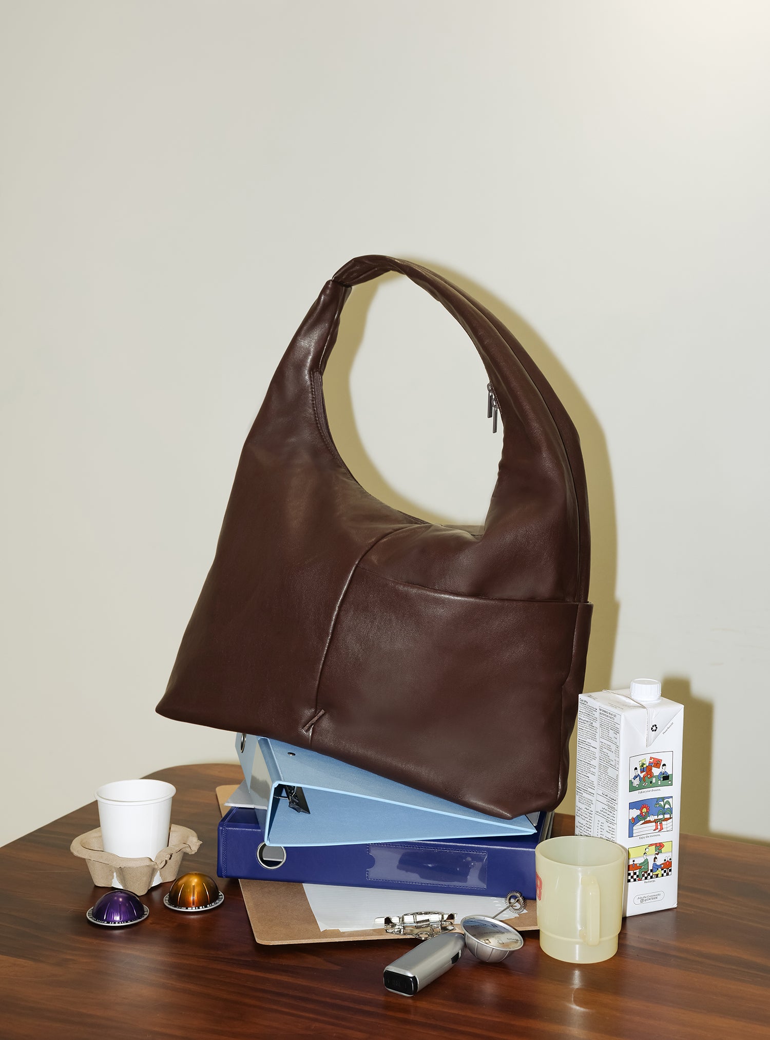 Designed to carry work-life essentials, the Arc is a slouchy hobo-style bag with dedicated compartments for your laptop and bottle, plus interior and exterior pockets for easy organisation.