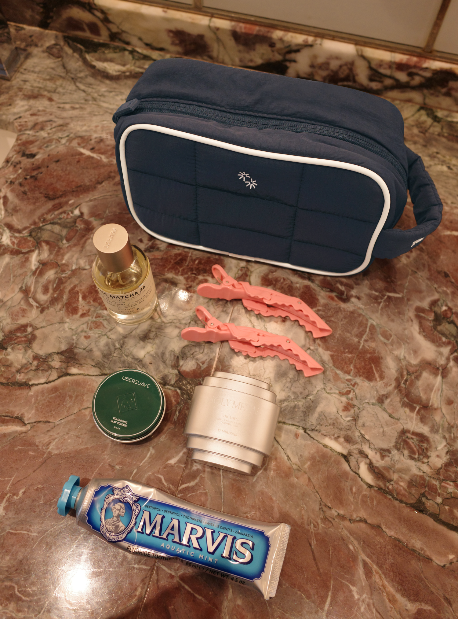 • Finished with a cream contrast matte vegan leather piping around the outer edge of the pouch