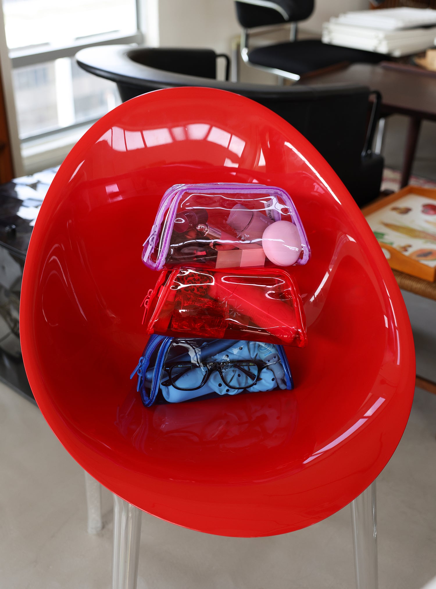 See-through with a glossy tinted finish, the Juicy Pouch is a zip pouch made with waterproof materials and a waterproof zip that brings a vibrant touch to your everyday routine — perfect for your toiletries, makeup, and small essentials.