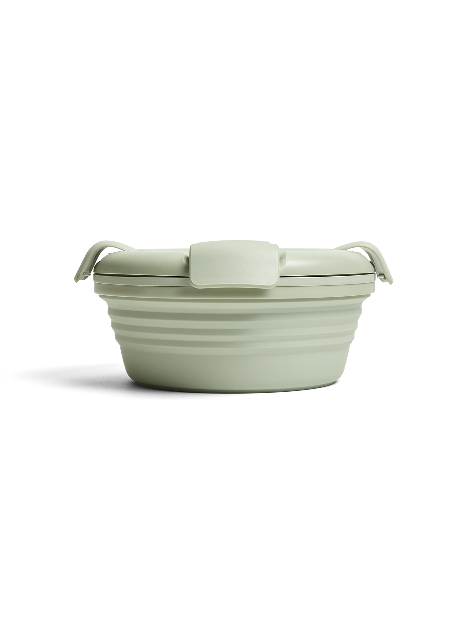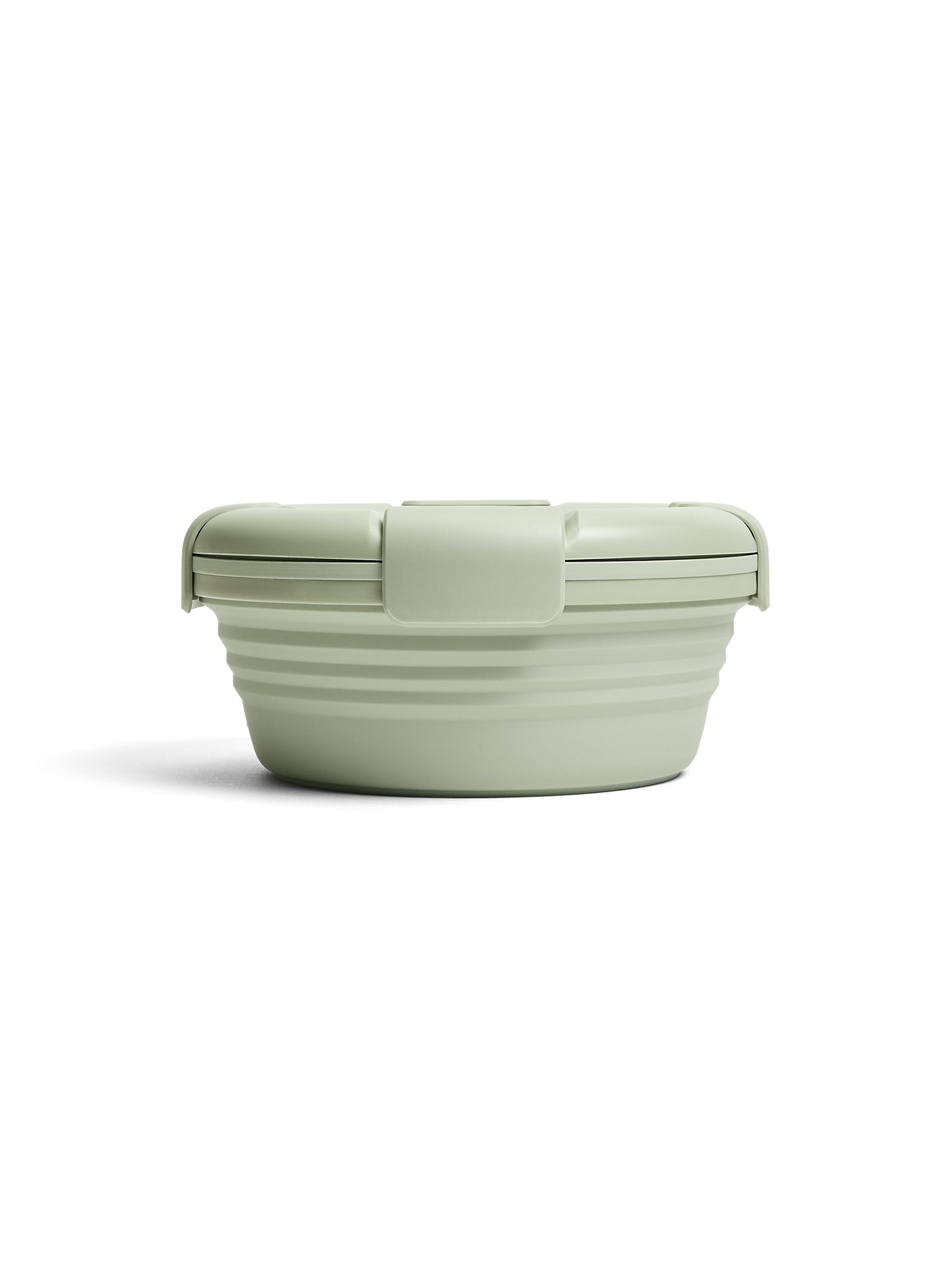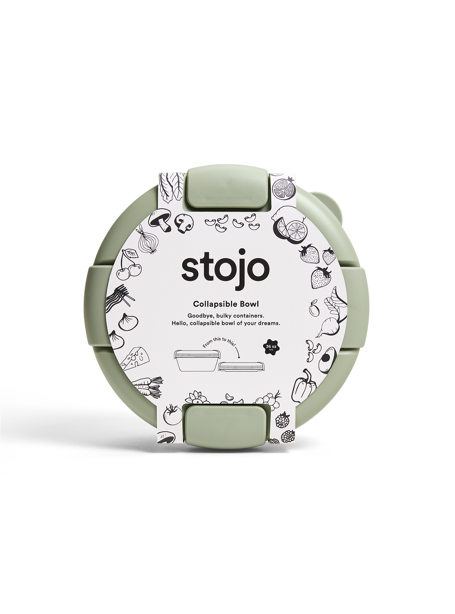 The Stojo Collapsible Bowl collapses into a flat disc for space-saving organization, complete with a lid with a leak-proof seal and clasp closure.