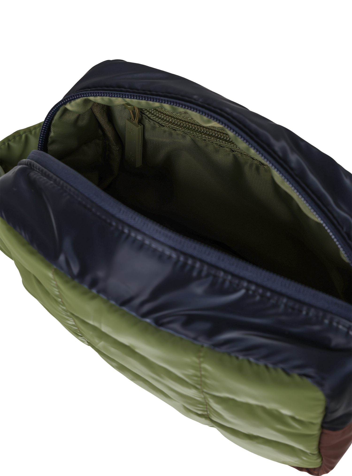 • Scout is a complementary navy and khaki colour block with a sheen